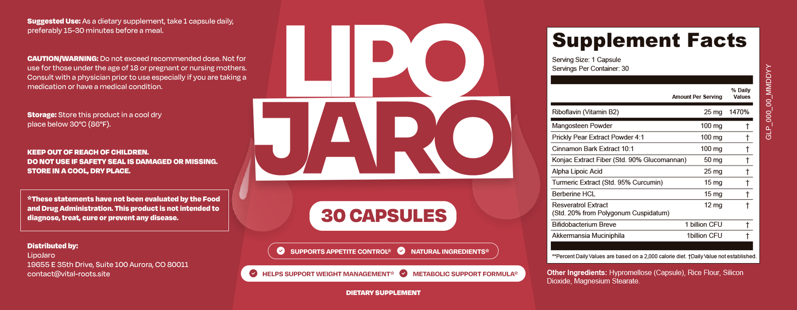 LipoJaro™ is a dietary supplement formulated with plant extracts, fiber, probiotics, and metabolic nutrients — designed to support weight management, digestion, and metabolic health as part of a balanced lifestyle.
